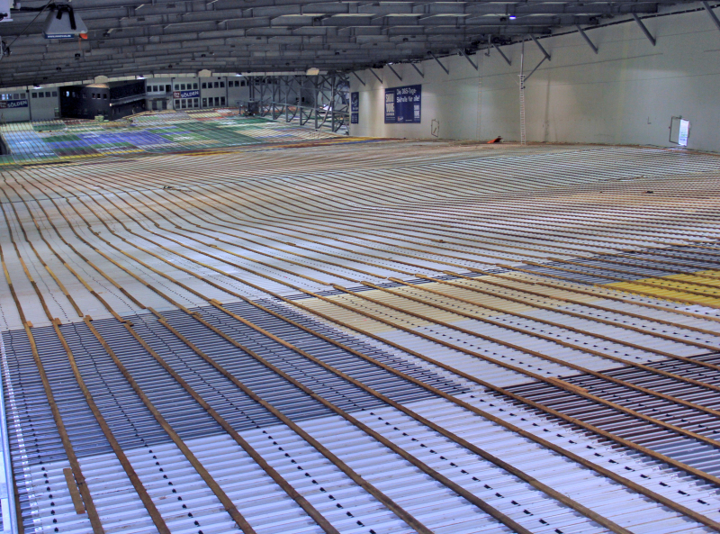 Die rund 120 km Rohre wurden in einem geringeren Abstand eingebracht und ermöglichen dadurch eine stärkere Kühlung des Bodens. So muss nun, um die Umgebungstemperatur von -2 bis -4 °C in der Halle zu erreichen, erheblich weniger über die Deckenbelüftung gekühlt werden.
