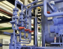 Das Wasser passiert einen Wärmetauscher, über den ein Gaskessel das Aufheizen des Wassers ermöglicht, wenn die Wärmepumpe nicht in Betrieb sein sollte (zum Beispiel an produktionsfreien Wochenenden). Danach gelangt das Wasser in eine Verteilung, von der drei Kreise abzweigen. Einer dient dem Temperieren der Ölleitungen und Tanks, der zweite versorgt die Gebäudeklimatisierung und der dritte ist für das Erwärmen von Wasser zu Reinigungszwecken.