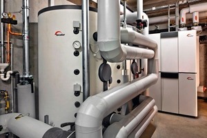 Ein Unternehmen, das im Bereich regenerativer Energien tätig ist, achtet auch im eigenen Hause auf wirtschaftliche Energieversorgung. Gemeinsam mit Tecalor (www.tecalor.de) kombinierte die Thomas Preuhs Holding GmbH natürliche Energiequellen in einem System, dessen Jahresarbeitszahl (JAZ) von fast 5,5 zukunftsweisend für den Objektbau ist. Ziel beim Neubau des zweigeschossigen Gewerbeobjekts des Technikunternehmens Thomas Preuhs Holding GmbH aus dem schwäbischen Geislingen ist es, 4500 m² Nutzfläche weitgehend ohne externe Energieversorgung zu betreiben. Die beiden Wärmepumpen von Tecalor, „TTF 52 GM“ und „TTF 40“, machen die im System vorhandene Energie nutzbar und sind mit 97 kW Heizleistung gerade für Großprojekte geeignet. Sie werden als SET-Geräte über einen Wärmepumpenmanager geregelt. Bei steigendem Wärmeenergiebedarf kann eine dritte Wärmepumpe in Kaskade zugeschaltet werden. Neu ist die Kombination mit einem Solareisspeicher, der die in Spitzenzeiten vorhandenen Energieüberschüsse speichert. Wasser setzt beim Gefrieren die gleiche Energiemenge frei, wie beim Erwärmen von Null auf 80 °C notwendig wäre, und dient so als Speichermedium. Rund drei Kilometer Wärmetauscherrohre wurden dafür innerhalb des Speichers installiert. Die im Wasser enthaltene Energiemenge reicht für eine Heizperiode von 100 Tagen. Im Sommer wird der größte Teil des Eisvorrats für die Kühlung des Gebäudes verwendet. Mit Hilfe von Solarenergie aus den neu entwickelten Parabol-Rinnen- sowie Sonnen-Kollektoren auf dem Dach wird das gefrorene Wasser in der Zisterne wieder verflüssigt und obendrein die Wärmepumpe mit Strom betrieben. Rechnerisch ist das Unternehmen damit unabhängig von Energieversorgern.