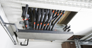 In den Innenräumen sorgen große Deckenkassetten für die zugluftfreie Verteilung erwärmter oder gekühlter Luft. Parallel tragen Kanaleinbaugeräte mit horizontaler Luftstromführung dazu bei, die frische Außenluft bedarfsgerecht vorzukonditionieren. Das ressourcenschonende Energiekonzept fußt u. a. auf einer intelligenten Temperaturverschiebung innerhalb des Gebäudes. Zum Einsatz kommt hier ein 2-Leitersystem, das mit einem Kältemittelverteiler, dem BC-Controller, die abzuführende Wärmeenergie innerhalb des Gebäudes verschiebt und dorthin transportiert, wo sie benötigt wird.