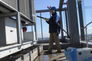 Auch beim 82 m hohen WeserTower konnte die Arbeit zügig erledigt werden. Bei ausgezeichnetem Wetter mit viel Sonnenschein und hervorragender Weitsicht auf das wunderschöne Umfeld waren sich die Mitarbeiter von Kipp Umwelttechnik einig: Das war einer der schönsten Arbeitsplätze seit langer Zeit.
