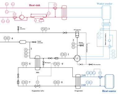 Die bereits installierte Pilotanlage (Abbildung 9, rechts), welche sich derzeit in der Inbetriebnahme befindet, nutzt die über einen Kondensator verfügbare Energie eines Dampfturbinen-Prozesses. Im Detail wird die Kondensationswärme genutzt, welche ursprünglich an die Umgebung abgegeben wurde. Diese wird jetzt durch Temperaturanhebung über die RHP wieder direkt in das Fernwärmenetz eingespeist. In Abbildung 8 ist die Einbindung skizziert, die Betriebspunkte können flexibel an den Sommer- und Winterbetrieb angepasst werden.