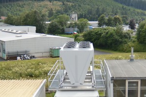 Für die Rückkühlung wurde ein Trockenrückkühler gewählt, der gleichzeitig als Freikühler genutzt wird. Die Wärmeabgabe wird dabei durch konvektive Wärmeübertragung an einen erzwungenen Luftstrom erreicht. Der Trockenrückkühler ist ein in sich geschlossenes System, bei dem kein Wasser verbraucht wird und bei dem auch u.a. keine Hygienekontrollen notwendig sind. Er arbeitet geräuscharm und ist einfach in der Handhabung.