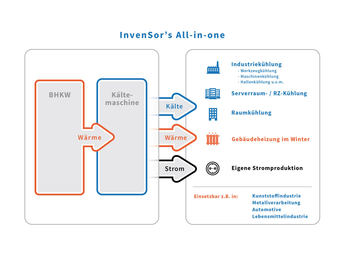 Die InvenSor GmbH ist seit 2006 auf dem Kältemarkt mit der Entwicklung und Herstellung von Adsorptionskältemaschinen (AdKMs) tätig. An den Standorten Lutherstadt Wittenberg und Berlin werden die Anlagen für einen Leistungsbereich bis 300 kW gefertigt. Sie sind in vielen verschiedenen Bereichen der Industrie einsetzbar wie z.B. in der Kunststoffherstellung und -verarbeitung zur Kühlung der Werkzeuge, in der Oberflächenveredelung zur Kühlung der Galvanikbäder sowie in der spanenden Metallverarbeitung zur Kühlung der Materialien.