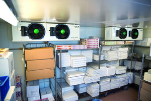 Die Gehäuse der Verdampfer sind pulverbeschichtet, Tropfwanne und Seitenteile sind abnehmbar und damit leicht zu reinigen. Der Lamellenabstand beträgt 7 mm. Daneben verfügen die Luftkühler über eine elektronische Abtauung und werden kontinuierlich über eine WLAN-gestützte Temperaturkontrolle vollautomatisch überwacht. „Sollte es irgendwo zu übermäßigen Temperaturschwankungen kommen, werden wir sofort von dem System benachrichtigt. Das garantiert die notwendige Lagersicherheit in den Kühlräumen“, sagt Flechtner.
