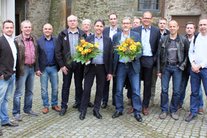 Am 14. April 2016 fanden Neuwahlen bei der Innung für Kälte- und Klimatechnik Osnabrück-Emsland statt. Neuer Obermeister (mit Blumenstrauß, links) und damit Nachfolger von Klaus Gering (rechts), der zum Ehrenobermeister gewählt wurde, ist Torsten Buddenbohm (Fa. Josef Große-Kracht, Osnabrück). Als Kassenführer neu in den Vorstand gewählt wurde Uwe Strothmann (4. v. links., Fa. Kintscher). Wiedergewählt wurden (vordere Reihe von rechts) Schriftführer Helge Ballmeyer, Lehrlingswart Alwin Otten und stellv. Obermeister Martin Rüterbories. Die Jahreshauptversammlung fand in den Räumen des Spezialpapier-Herstellers Felix Schoeller Group in Osnabrück statt, wo u.a. die klimatechnischen Anlagen von den Innungsmitgliedern besichtigt wurden.