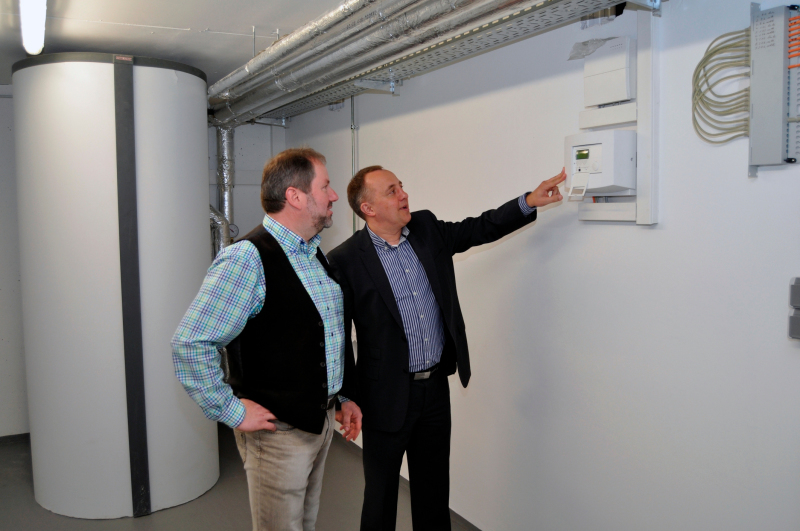 „Das architektonische Konzept von Matthias Hille hat mich überzeugt“, erklärt Meinolf Bonnekoh. Insgesamt neun Wohnungen zwischen 50 und 90 m² beherbergt das realisierte dreigeschossige Gebäude. „Bei der Haustechnik habe ich dann meine eigenen Vorstellungen verwirklicht. Ursprünglich war ohnehin schon eine Wärmepumpe als Heizsystem vorgesehen, zusätzlich wollte ich aber über eine Photovoltaikanlage auch den dafür benötigten Antriebsstrom selbst erzeugen.“ Heute liefert die auf dem Flachdach in Ost-West-Richtung aufgeständerte 30 kWp-Anlage (Tegreon-Module) ihren Ertrag einerseits an die Wärmepumpe vom Typ „WPL 34“, andererseits auch an die Mieter im Haus. Wenn dann noch Überschuss besteht, wird dieser ins Netz eingespeist. „Grundsätzlich ging es mir darum, eine wirtschaftliche Lösung zu finden, bei der die Nebenkosten der Mieter auf das Notwendige beschränkt werden.“