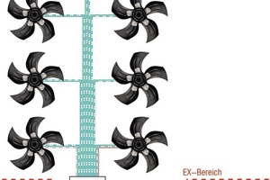 EC-Ventilatoren für Ex-Bereiche der Zone 1 und 2Aus Umweltschutzgründen geht heute der Trend zu natürlichen Kältemitteln. Infrage kommen hier zwei Kategorien: nicht brennbare Kältemittel wie beispielsweise CO2 und brennbare wie Propan oder Butan. Bei nicht brennbaren natürlichen Kältemitteln ist die Ventilatorenauswahl einfach, weil keine besonderen Schutzmaßnahmen zu berücksichtigen sind. Aus Energiespargründen kommen hier immer häufiger EC-Ventilatoren zum Einsatz. Schwieriger dagegen ist die Ventilatorenwahl, wenn brennbare Kältemittel eingesetzt werden, denn hier gilt es, ab einer bestimmten Anlagengröße Ex-Schutzbestimmungen zu berücksichtigen. Heute ist das allerdings kein Problem mehr: Die energiesparenden Eigenschaften des EC-Ventilators, sowohl im Volllast- als auch im Teillastbetrieb, lassen sich jetzt in Exbereichen der Zone 2 und 1 nutzen.
