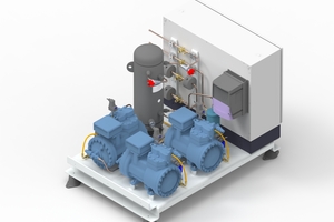 Mit dem neuen „CO₂-Verbundsystem“ bietet [CF] SYSTEMS erstmals eine Kälteanlage für das natürliche Kältemittel CO₂ im Leistungsbereich für Gastronomie, Hotellerie und kleinflächigen Lebensmitteleinzelhandel an. Die vormontierten Systeme basieren auf zwei oder drei kompakten halbhermetischen Verdichtern mit aktivem Ölmanagement und Frequenzregelung des Führungsverdichters. Die Steuerung erfolgt wahlweise über Regelungssysteme von Carel, Danfoss oder Wurm. Ein vorprogrammierter Schaltschrank ist im Lieferumfang enthalten und vereinfacht die Inbetriebnahme. Optional ist eine Wärmerückgewinnungseinheit integrierbar. Die Anlagen sind für Innen- und Außenaufstellung geeignet, optional mit Wetterschutzgehäuse. Sechs vorkonfigurierte Einheiten mit Carel µRack CO₂-Regelung für Normalkühlung sind ab Lager verfügbar. Mit einem Schalldruckpegel von 33–38 dB(A) (in 10 m Entfernung) eignet sich das System auch für geräuschsensible Umgebungen. Betriebsdrücke bis 120 bar (Hochdruck) sind vorgesehen. Komponenten wie ein 14 l-Sammelbehälter, Koaleszenz-Ölabscheider, Sensorik und Dämmung sind integriert.