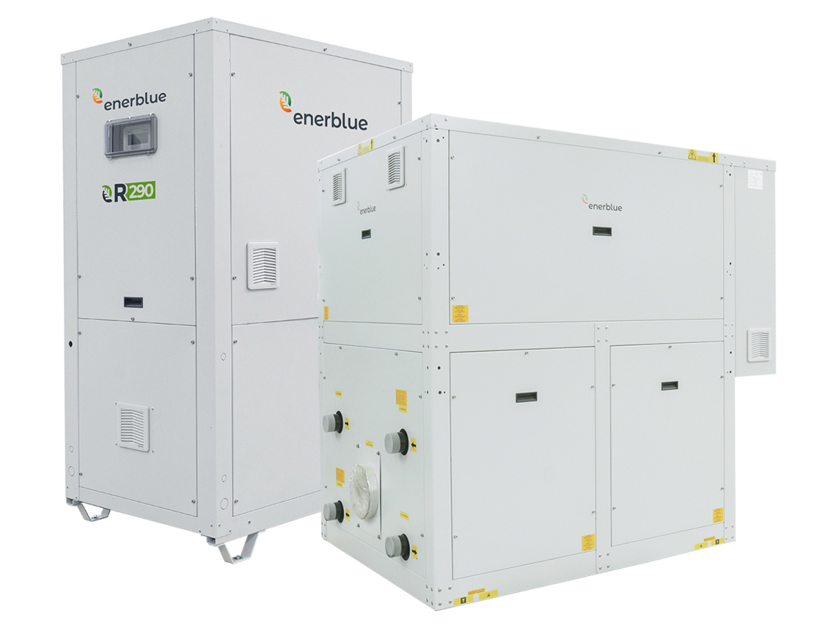 Diese Baureihe wird mit dem natürlichen und kostengünstigen Kältemittel R290 (Propan) betrieben und ist mit den aktuellen Ecodesign-Richtlinien konform. Dank der umfangreichen Konfigurationsmöglichkeiten eignen sich die Maschinen sowohl für die Innen- als auch für die Außenaufstellung. Dabei spielt vor allem die optional erhältliche geräuscharme Konfiguration eine besondere Rolle. Während die STEEL-Wärmepumpen mit hermetischen Scrollverdichtern und Plattenwärmeübertragern ausgestattet sind, verfügen die Geräte der IRON-Baureihe über halbhermetische Hubkolbenverdichter und Plattenwärmeübertrager. Wahlweise kann auch ein doppeltes Sicherheitsventil auf der Hochdruckseite installiert werden. Erhältlich sind die Geräte mit Heizleistungen (W7; W55) von 29 - 368 kW. Des Weiteren ermöglichen sie Wassertemperaturen von bis zu 68 °C bei minimalen Außentemperaturen bis zu -10 °C. Die Kühlleistungen (W35; W7) liegen außerdem im Bereich von 25 - 309 kW. Zudem sind die Geräte auf der Wasserseite reversibel.