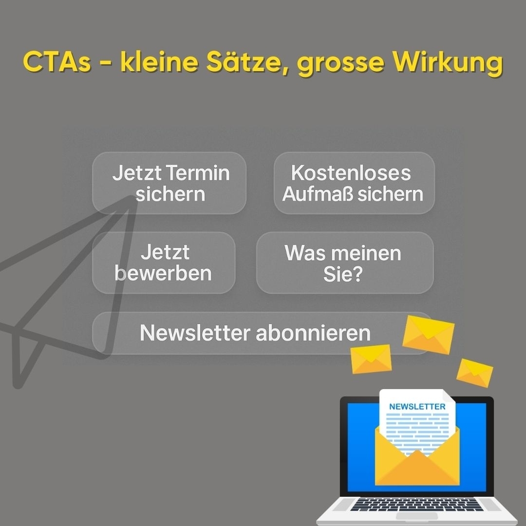 Bild gepostet, Projekt gezeigt – und dann? Ein CTA zeigt klar den nächsten Schritt und bringt die Leser zum Klicken, Kommentieren oder Kontaktieren. Eine Handlungsaufforderung – im Marketing auch...