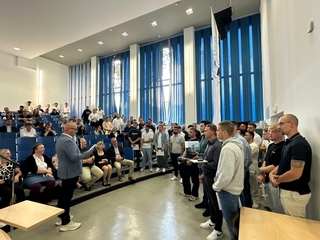 Die Übergabe der Gesellenbriefe fand im großen IKKE-Hörsaal unter der Leitung des Vorsitzenden des Gesellenprüfungsausschusses Boris Haas gemeinsam mit dem stellvertretenden Obermeister Stefan Plücker und Vertretern der Berufsschulen aus BBBK-Duisburg und HHEK-Bonn statt. Stefan Plücker sprach die frisch gebackenen Gesellen frei – zuvor hatte er aktuelle Probleme der Welt angesprochen, die nun von der jungen Generation zu lösen sind. Er ermunterte die neuen Gesellen auch, sich nicht auszuruhen, sondern sich ständig weiterzubilden, so dass man in unserem Handwerk auch besteht. Verantwortung zu übernehmen ist möglicherweise der Schlüssel zum Erfolg.