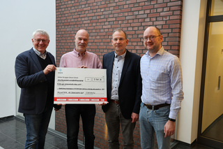 Norbert Klostermann (2. v.r.) und Andreas Weisheit (r.) von Westfalen übergaben den Spendenscheck im Namen aller Mitgliedsunternehmen an Gerd Frisch (l.) und Heribert Baumeister (2. v. l.) vom BIV.
