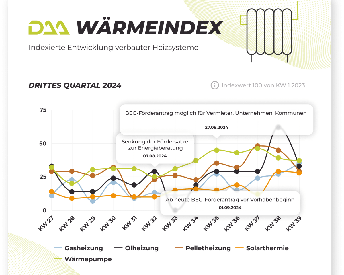 DAA WärmeIndex Q3 2024: Erneuerbare zeigen zaghaft positive Entwicklung trotz insgesamt schwacher Konjunktur