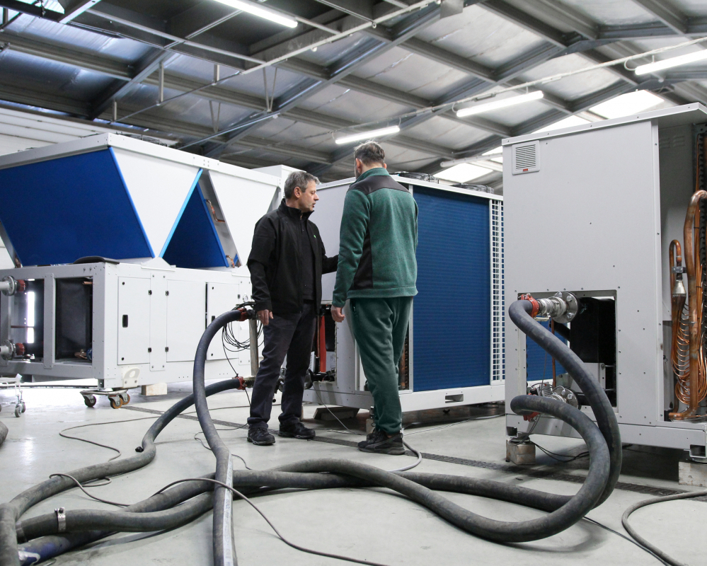 Um die Effizienz und Leistung der Anlagen kontinuierlich zu verbessern, führt Refra strenge produktionsbegleitende Prüfungen sowie End-of-line-Tests durch. Ziel ist dabei, die optimale Kombination von Komponenten zu ermitteln. Während der gesamten Testphase werden Effizienz, Leistungsaufnahme und Stromverbrauch des Gerätes präzise gemessen, ebenso der Geräuschpegel und die Vibrationen. Refra legt größten Wert auf Genauigkeit und Zuverlässigkeit. Durch sorgfältige Tests wird sichergestellt, dass der Kunde ein Gerät erhält, das alle technischen Anforderungen zu (mindestens) 100% erfüllt.