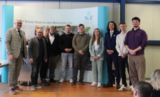 Ulrich Bähre (l.) und Andreas Werner (2. V.l.) mit den Prüfungsbesten (einmal Note 1 und siebenmal Note 2).