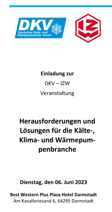 04.05.2023Am 06. Juni 2023 veranstalten DKV (www.dkv.org) und IZW (www.izw-online.de) in Darmstadt das Kolloquium „Herausforderungen und Lösungen für die Kälte-, Klima- und Wärmepumpenbranche“. Vielfältige Themen beschäftigen die Branche: Klimaerwärmung, Wärmewende, Lieferketten, Fachkräftemangel, Digitalisierung und Automatisierung sind die aktuellen Treiber für die Kälte-, Klima- und Wärmepumpenbranche.