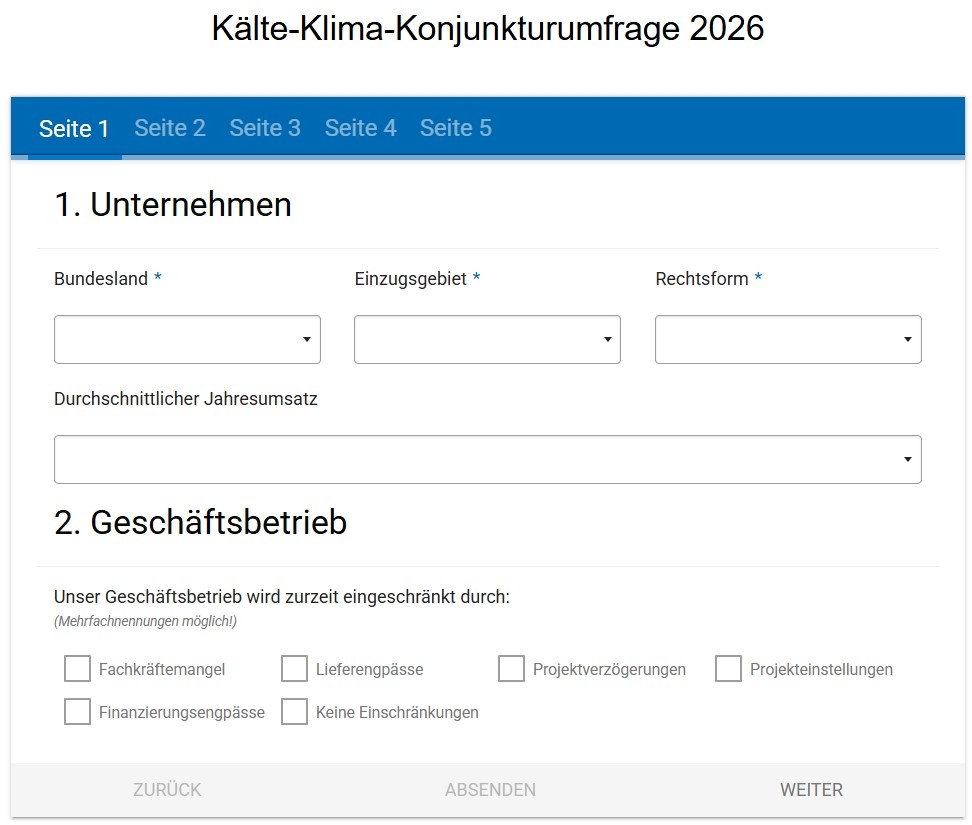 Die Online-Umfrage wurde vom Umfang her im Vergleich zum Vorjahr deutlich reduziert, so dass die Beantwortung nur wenige Minuten in Anspruch nimmt. Eine Beteiligung an der Umfrage ist bis 20. Mai unter folgendem Link möglich: www.vdkf.de/kaelte-klima-konjunkturumfrage-2026