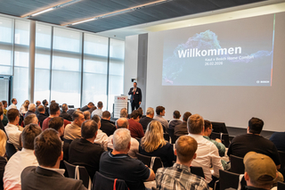 Philip Kaut begrüßt die zahlreichen Teilnehmer beim Kaut Hitachi/Bosch Forum in Renningen.