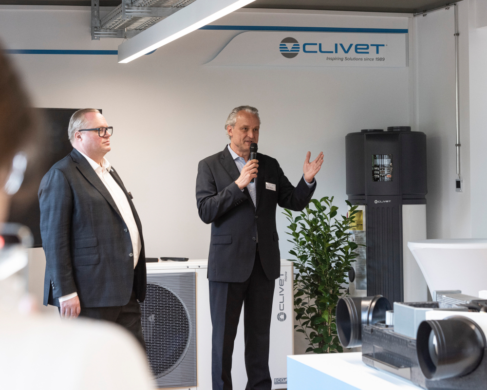 Jörg Wohlfahrt (l.), Sales Manager Projects und Leiter des Standorts Berlin, Clivet GmbH, und Georg J. Oborny, Managing Director, Clivet GmbH, bei der Präsentation des neuen Büros in Berlin