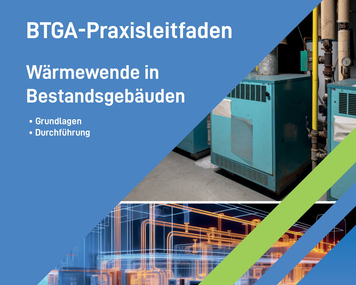 Cover des BTGA-Praxisleitfadens „Wärmewende in Bestandsgebäuden“