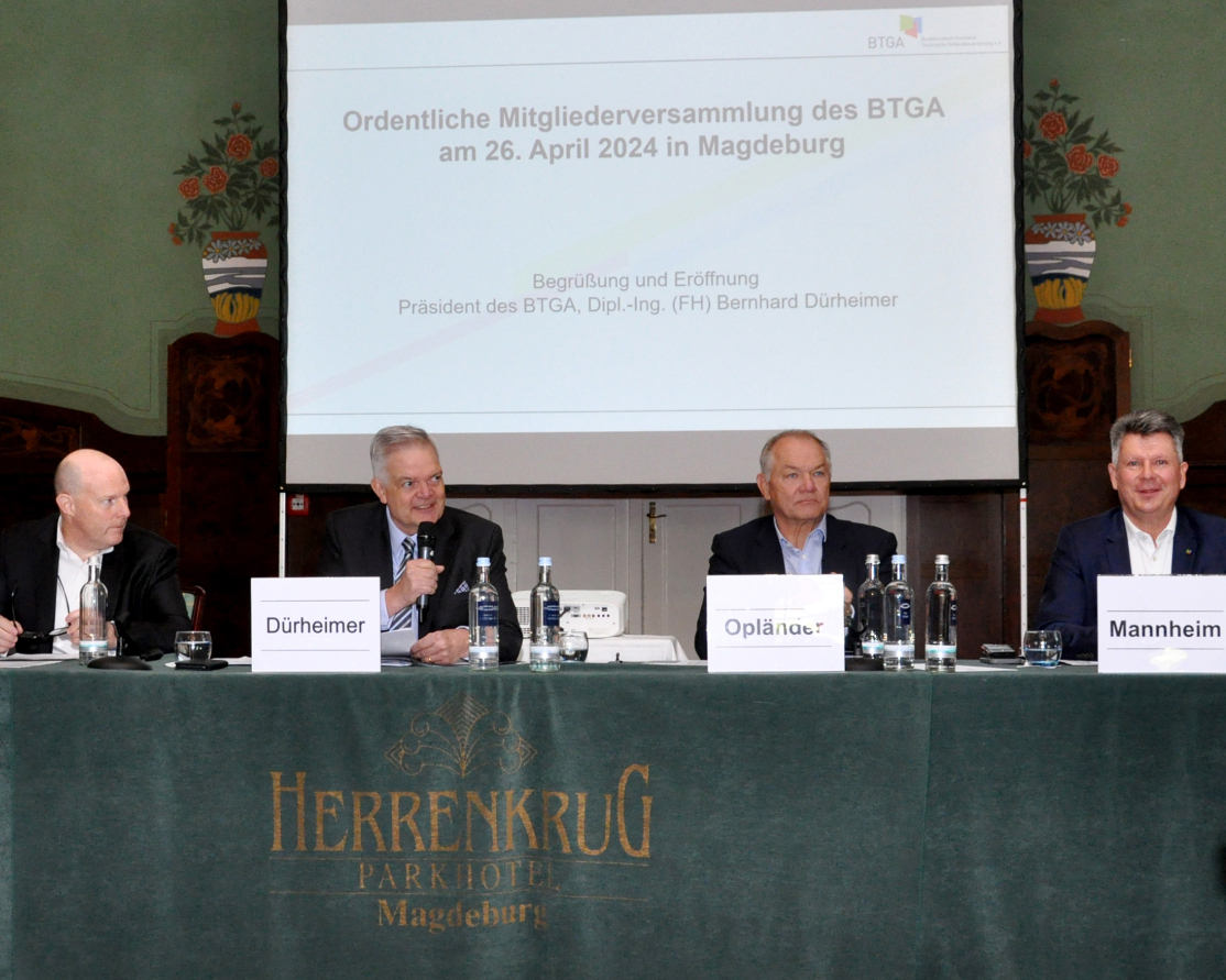 BTGA-Präsident Bernhard Dürheimer eröffnet die BTGA-Mitgliederversammlung 2024 in Magdeburg