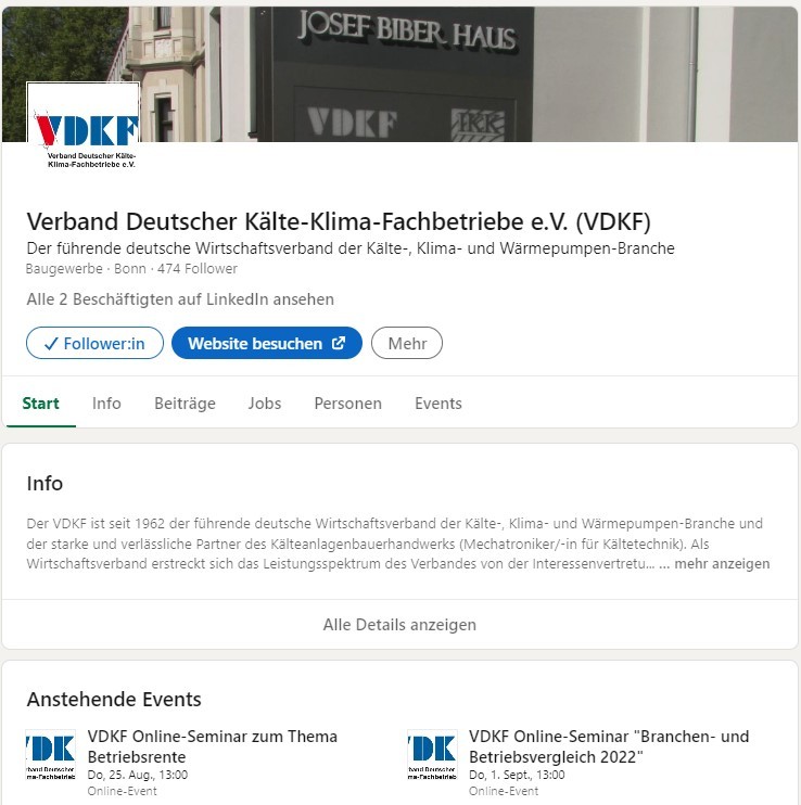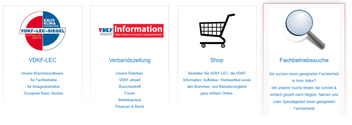 24.02.2021Der VDKF (Verband Deutscher Kälte-Klima-Fachbetriebe) hat seine Webseite überarbeitet und zukunftsfähig gemacht. Neben einem neu gestalteten Layout und einem umfassend überarbeiteten Inhalt bietet die neue Webseite darüber hinaus einige weitere Neuerungen und Möglichkeiten. Dazu gehören u.a. ein responsives Design, ein Kalender, ein Shop und die Fachbetriebssuche. Wer neugierig geworden ist, kann sich unter www.vdkf.de selbst ein Bild davon machen. Konstruktive Kritik sowie Hinweise auf Fehler und Optimierungsmöglichkeiten sind seitens des VDKF willkommen.