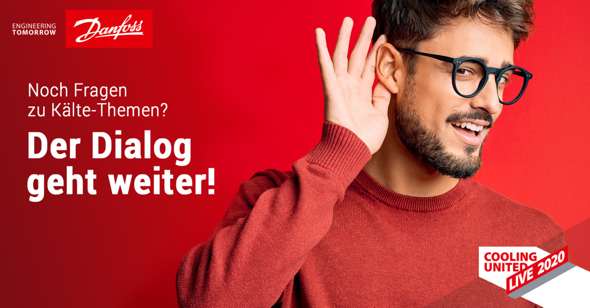Das virtuelle Live Event "Cooling United Live" von Danfoss findet vom 07.-08. Oktober 2020 statt. Cooling United Live wurde für die Bereiche Klimatechnik, Gewerbekälte, Lebensmitteleinzelhandel und Industriekälte entwickelt und dient als Lernforum und als Ausstellungsort für neue Technologien.